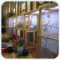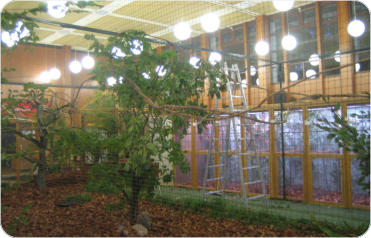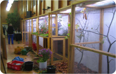 Großräumige und gut ausgeleuchtete Volieren wurden aufgestellt und liebevoll ausgeschmückt, damit die farbenprächtigen Vögel in