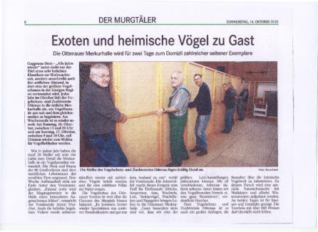 Bericht im “Badischen Tagblatt” zur kommenden Vogelschau