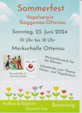 Am 23.06.2024 findet in der Merkurhalle Ottenau das erste Sommerfest der Vogelfreude